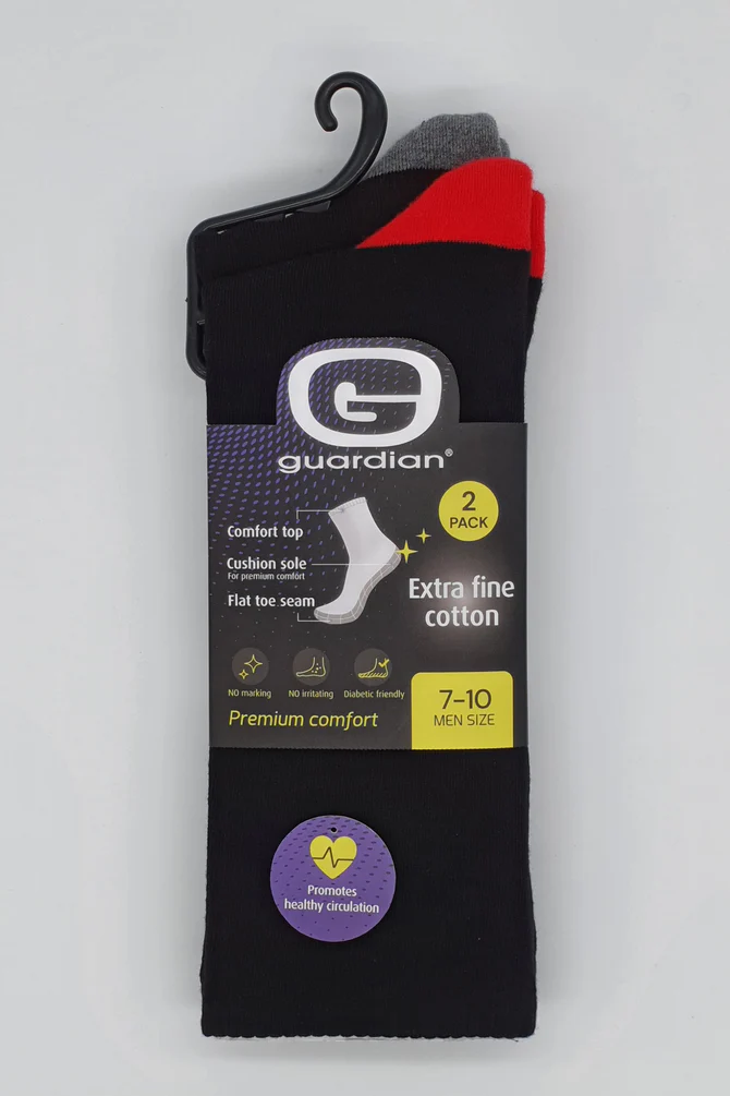 GUARDIAN Mens Circulation Socks. Crafted with a cotton-rich blend and smart comfort features, this 2-pack is designed to keep your feet feeling fresh, cushioned, and irritation-free from morning to night.